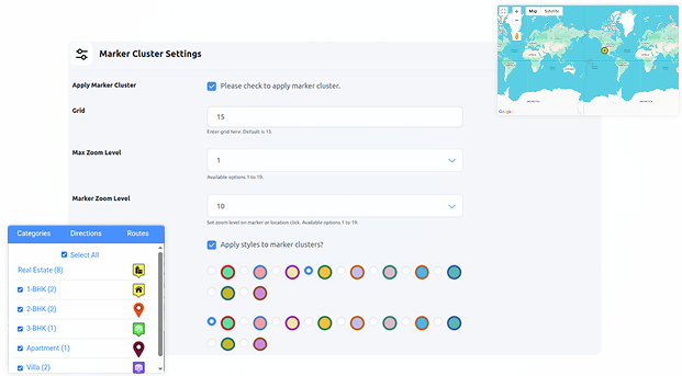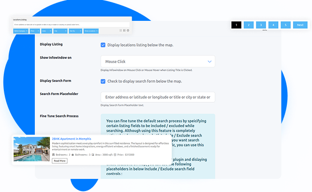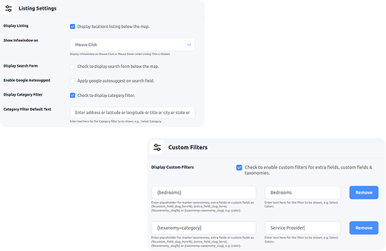 Enable advanced filtering by categories, taxonomies, or custom fields, including radius searches.