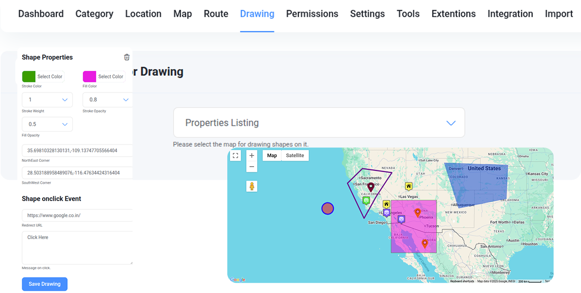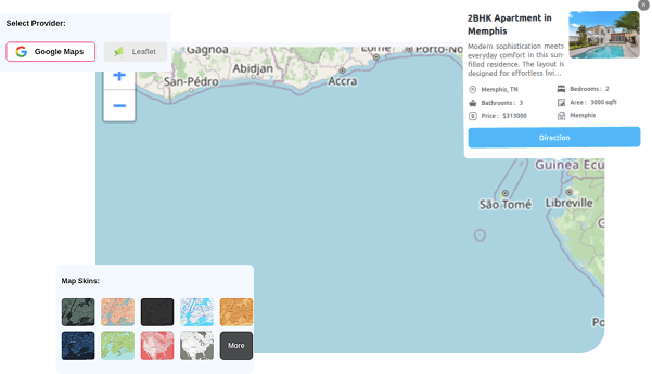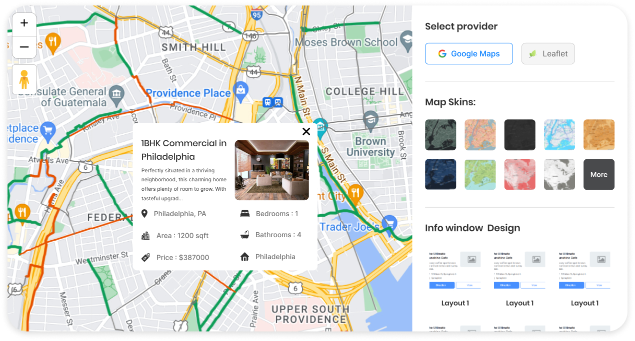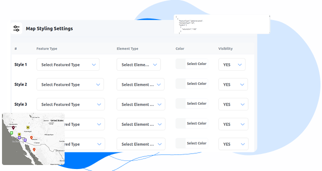 Apply Snazzy Maps styles or create custom skins for branded maps.