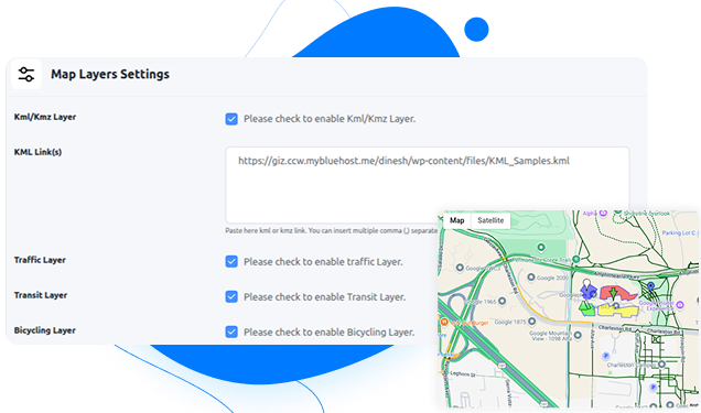Overlay KML, KMZ, or GeoJSON for advanced visuals like transport routes.
