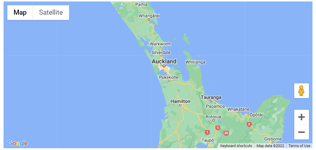 This example generates a map beginning in Auckland, New Zealand. The map only shows New Zealand. The user may move away from Auckland and explore other New Zealand cities, but they cannot pan or zoom beyond the map’s boundaries.